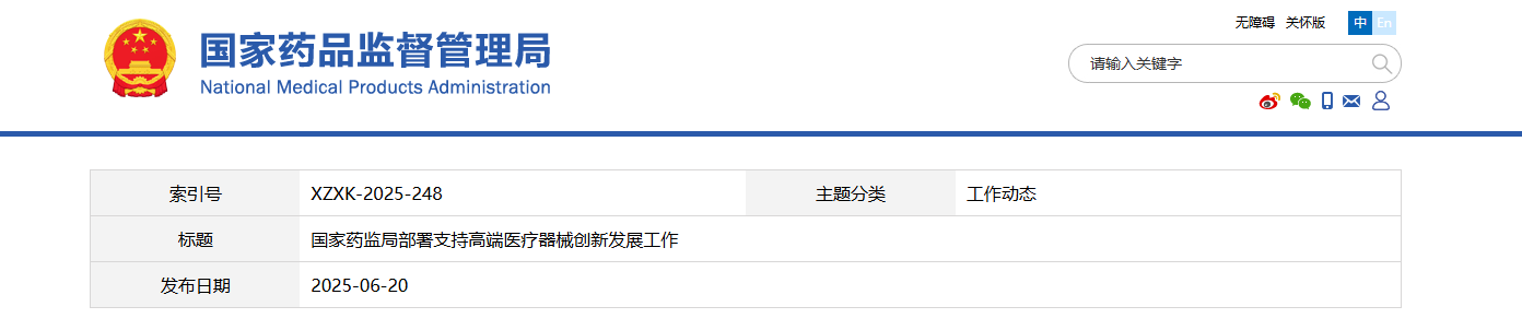 6月20日,国家药监局党组书记、局长李利主持召开会议,研究部署支持高端医疗器械创新发展举措,审议通过《关于优化全生命周期监管支持高端医疗器械创新发展的举措》(以下简称《举措》)。